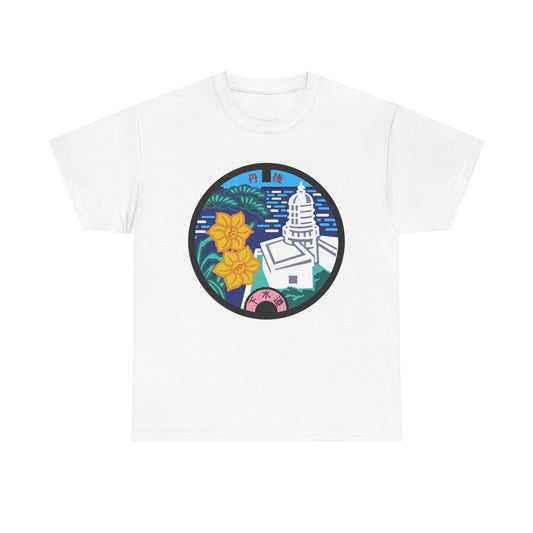 Amino Town Tower & Flower Manhole T-Shirt: A Journey Through Time Unisex Heavy Cotton Tee
