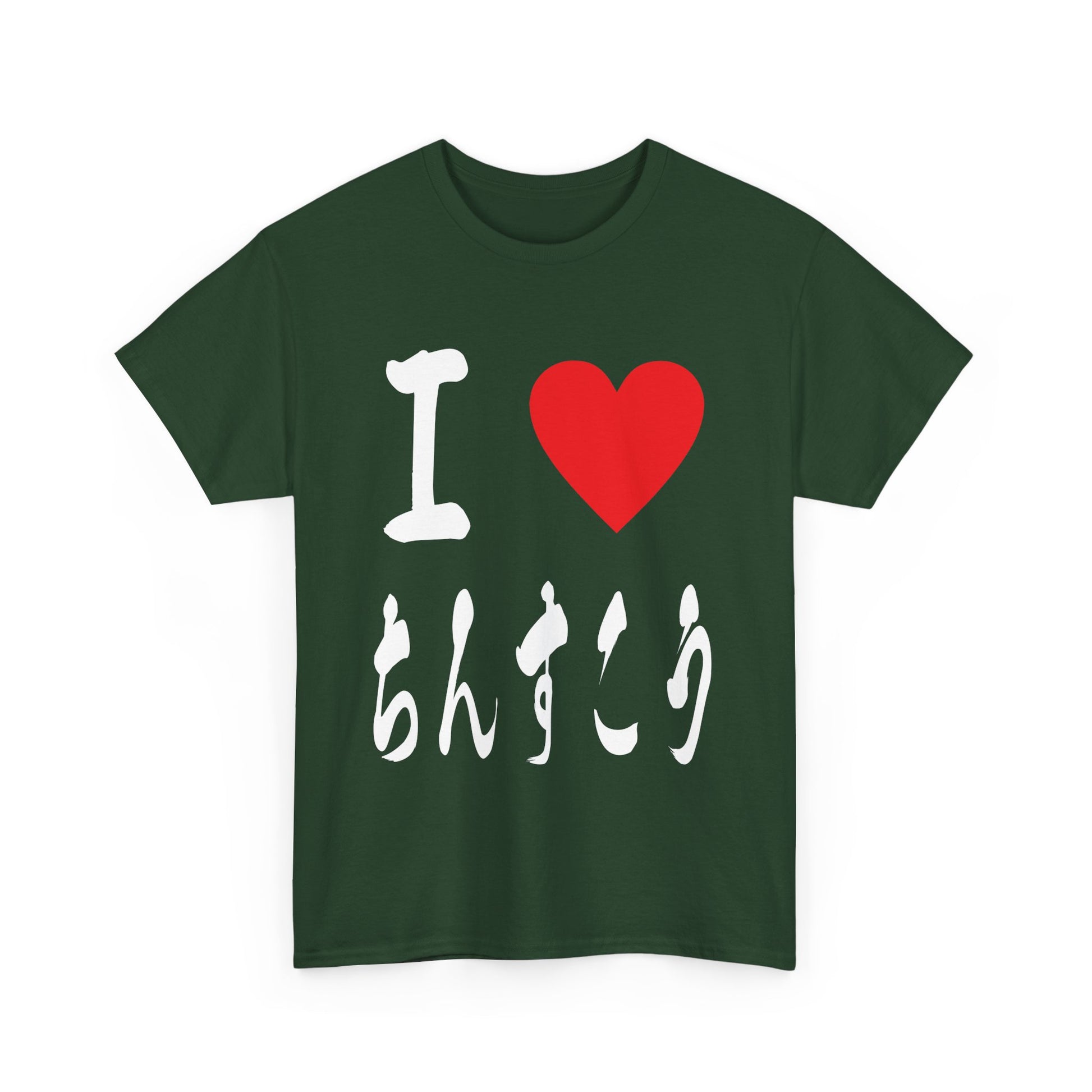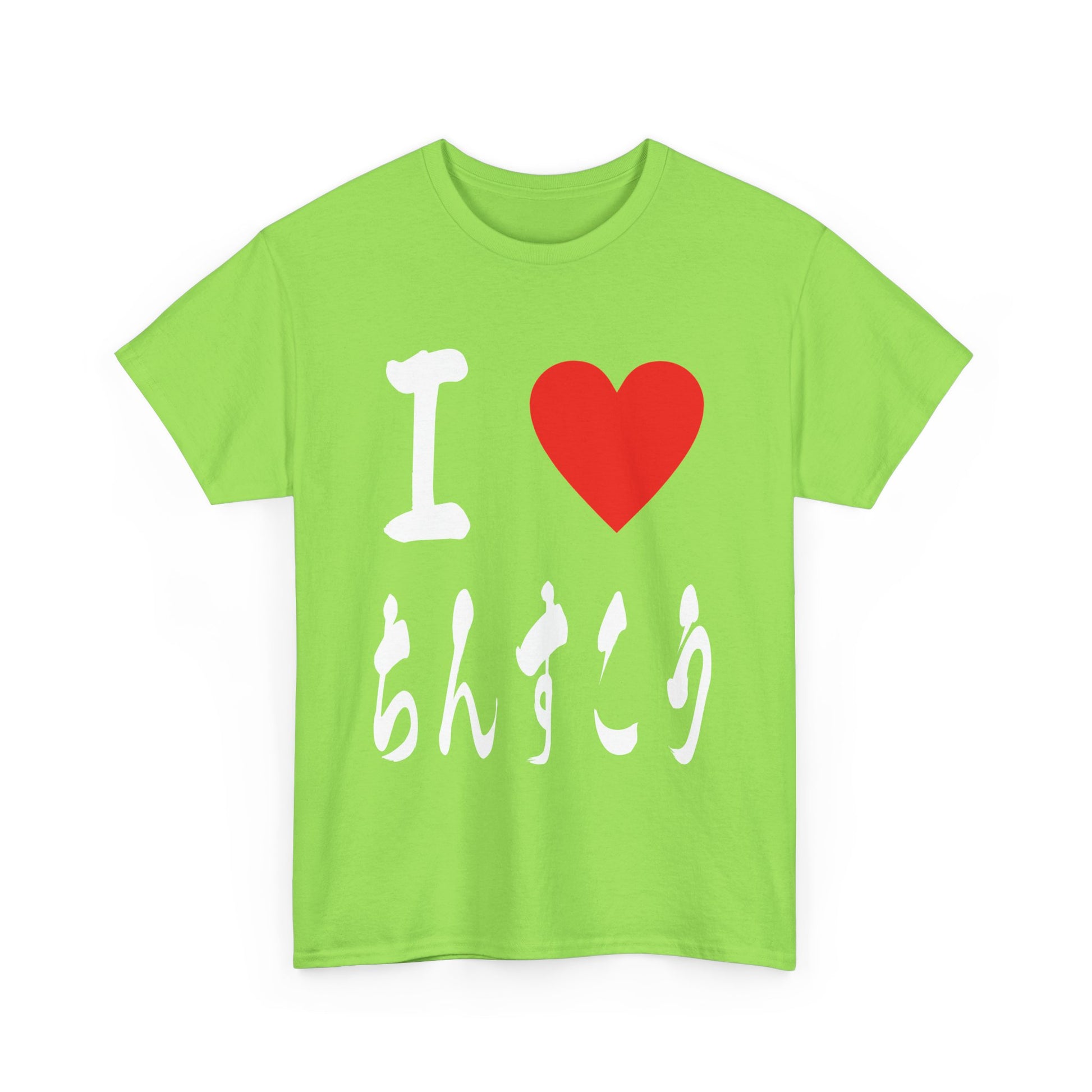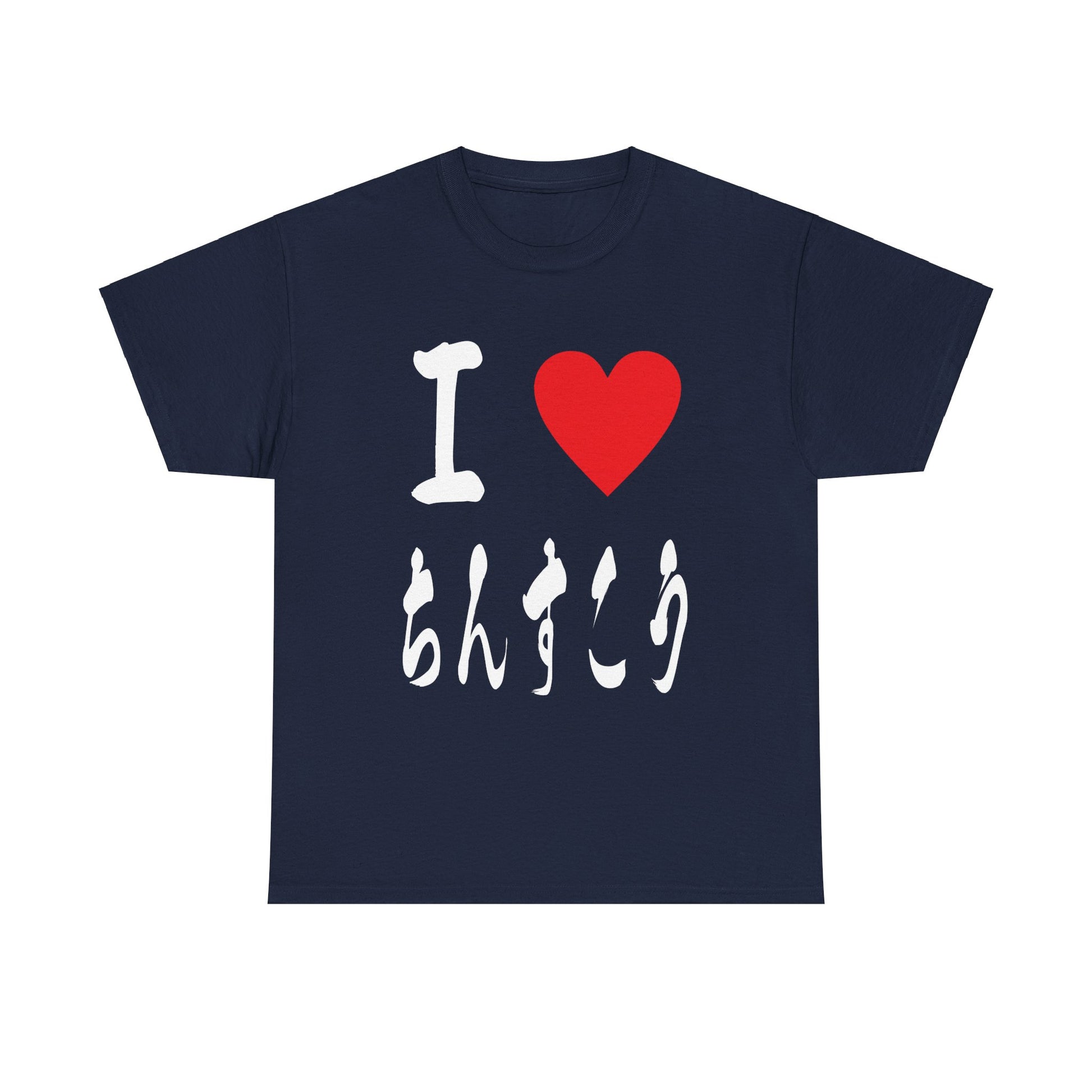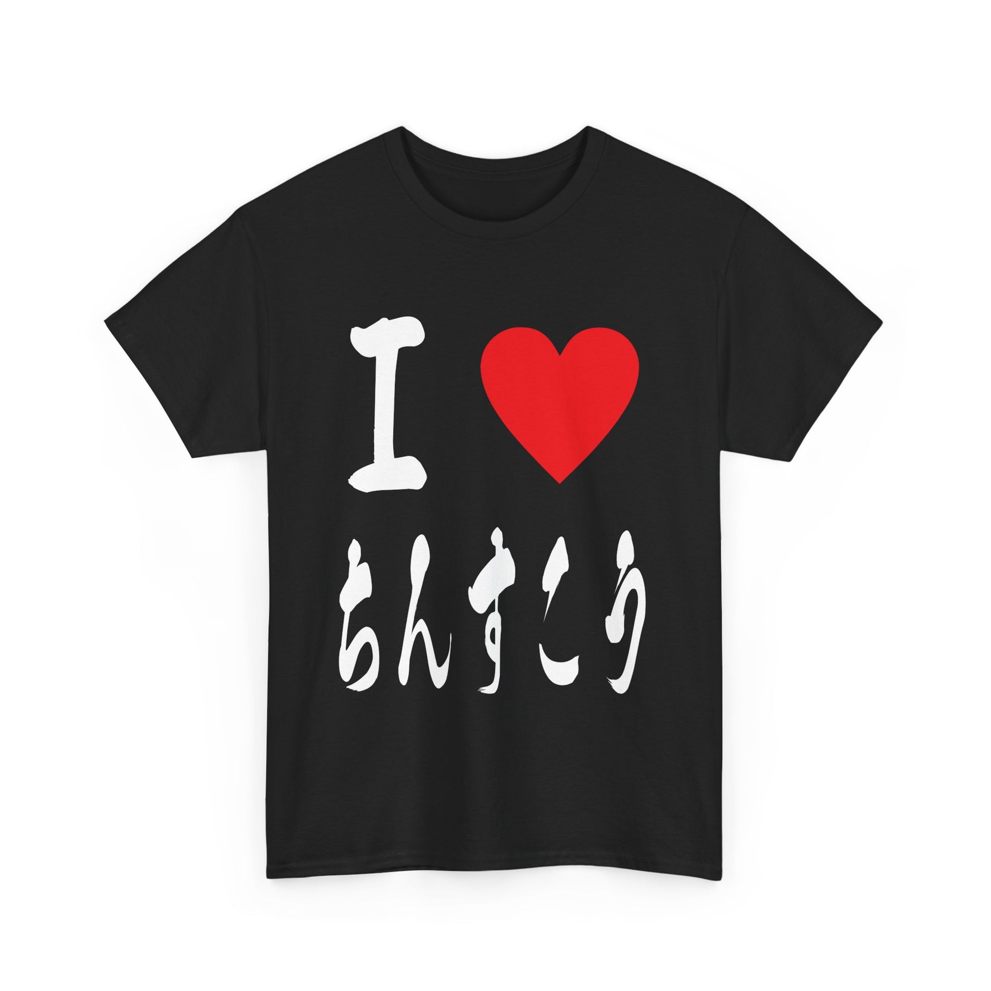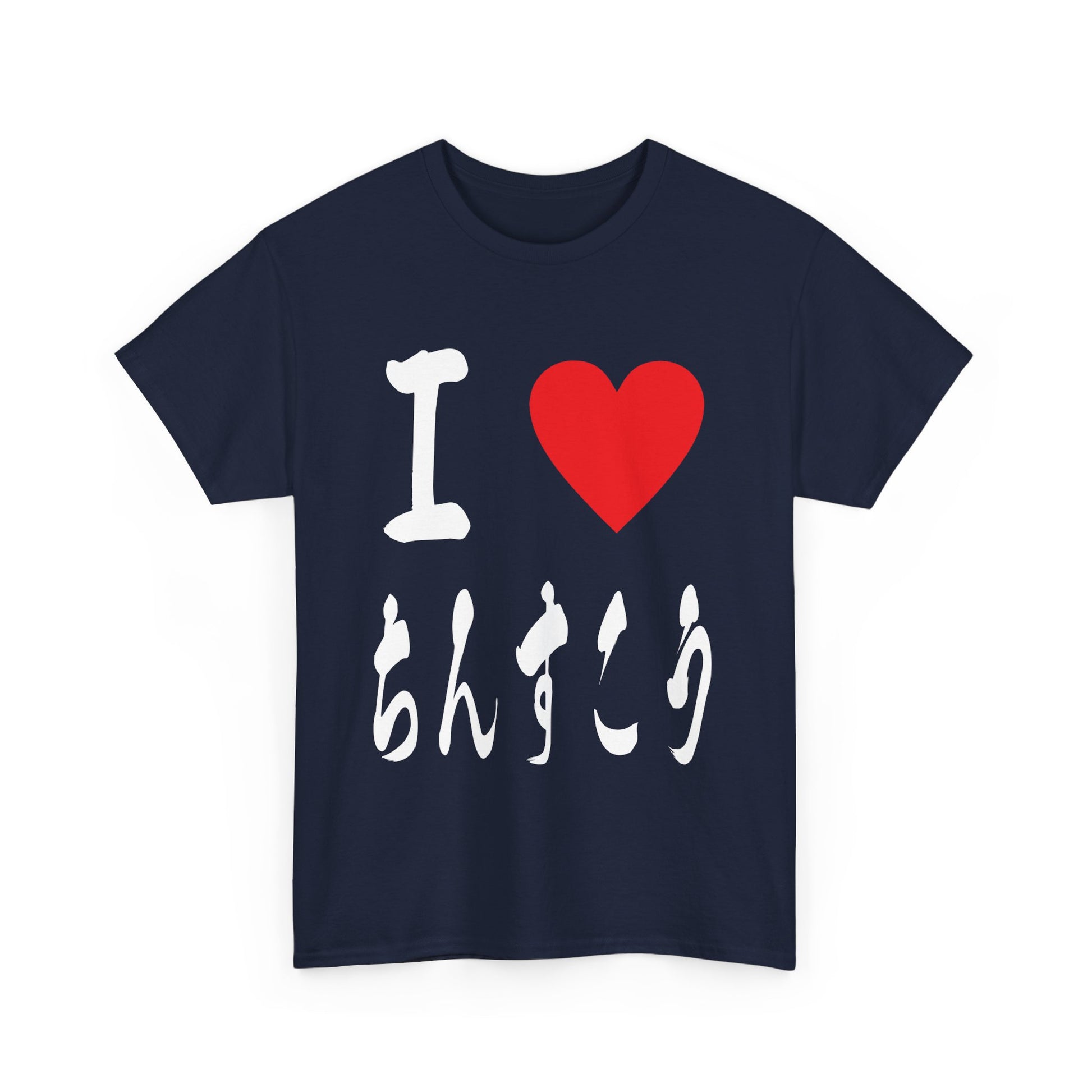 This unique t-shirt features "I ♡ Chinsuko" elegantly written in authentic Japanese calligraphy. Chinsuko, delicate shortbread cookies, are a cherished Okinawan tradition dating back to the Ryukyu Kingdom.Â